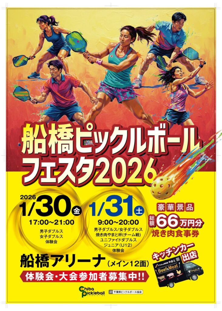 | 協賛・後援(予定含む) | 焼肉やまと 船橋本店 日本ジュニアピックルボール協会 日本パラピックルボール協会 宇井商店 募集中 |